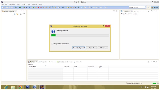 When downloaded is completed. Then you have to first install java development kit (JDK 1.7) on your system. When you clicked on jdk1.7 then installation is started. Then you have to install eclipse ide in your system. First copy the zip file and extract that zip file in your system, after extraction same name folder is created. Then open Eclipse IDE then eclipse window is open. Android offers a plugin for the Eclipse IDE called Android Development Tools(ADT).