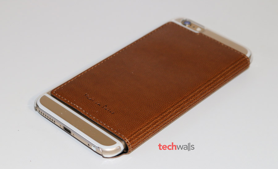 The case is crafted in France and its design is so impressive. It has a book-style look with a front cover made of high-grade polyurethane which looks and feels like genuine leather. The phone itself is protected by a slim and transparent plastic shell, the back is also covered with the leather-like material but the top and bottom parts are clear to show off the beauty of your iPhone. It is very easy to apply the case on the iPhone 6 Plus, just snap it into the plastic shell and you are done, however, I found it difficult to remove the case because it is tough and not really flexible.