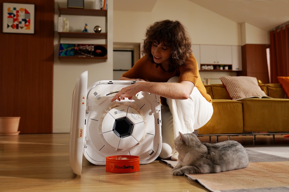 The PawSwing Neo also improves on previous PawSwing designs with better usability. It has a new modular layout which is 80% faster to assemble and 50% quicker to clean. The entrance adapts to cats of different sizes, and a redesigned main food bowl replaces treat dispensers. The system delivers a stress-free, 360-degree grooming experience so that cats can groom from all angles completely on their own. PawSwing also uses an instinct-driven reward system that uses food and positive reinforcement to make grooming feel natural and satisfying for cats.