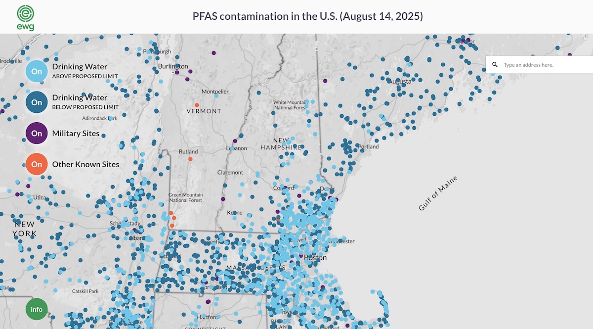 Because PFAS don’t break down easily in the environment, they persist in soil, air, vegetation, and water across vast areas, making exposure a nationwide concern – not just a regional one. For example, a multi-state analysis found PFAS contamination in 98% of tested U.S. waterways across 19 states, including elevated levels downstream from wastewater treatment plants and land application sites for biosolids.