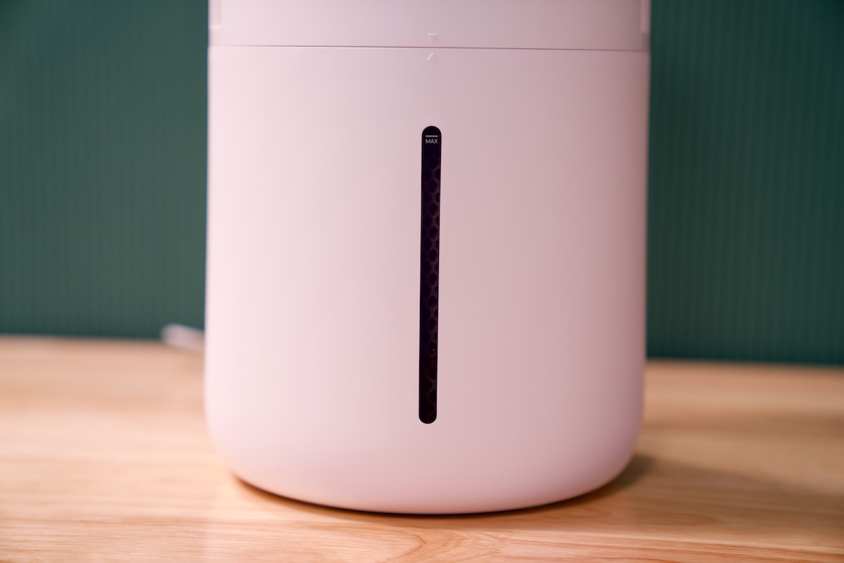 The biggest, most noticeable advantage of the device is the “mist-free” part. Unlike ultrasonic units that spray a fine visible mist and sometimes leave white mineral dust on nearby surfaces, the HC13 uses evaporative technology. You still need to feed water into the water tank but you can just use tap water. The full tank could last a few days of continuous usage, depending on the humidity level of your room.