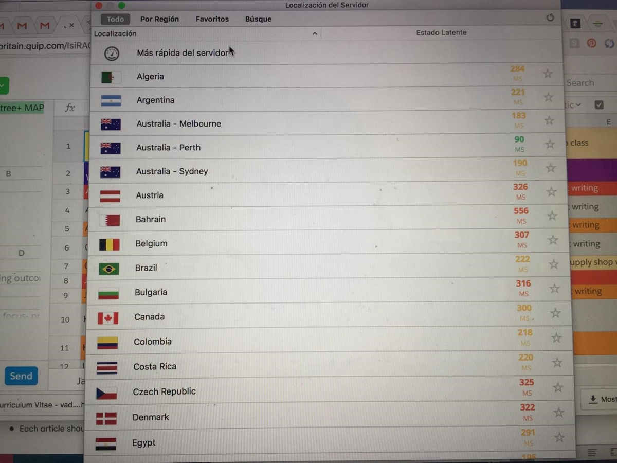 - A window will appear with a list of locations and their speed. It is best to have a speed that is listed in green and that is less than 100. For example, Perth, Australia, would be an excellent choice.